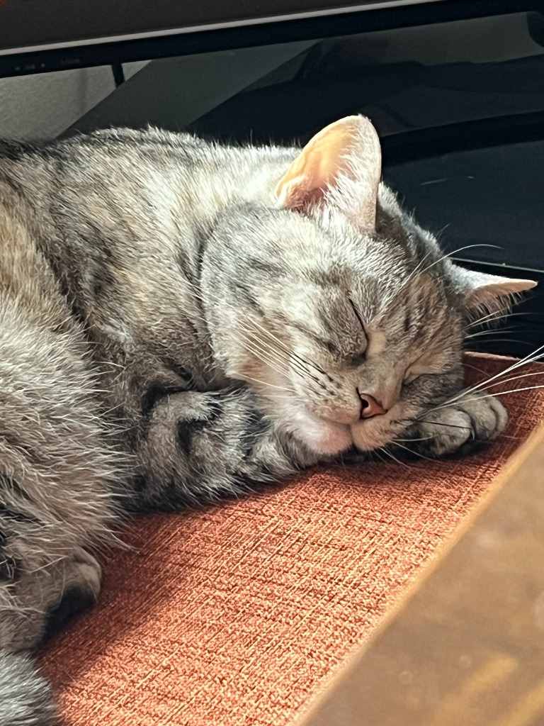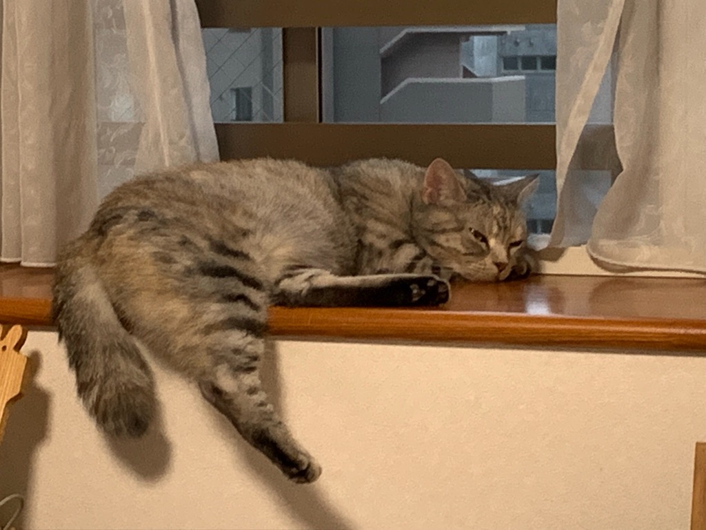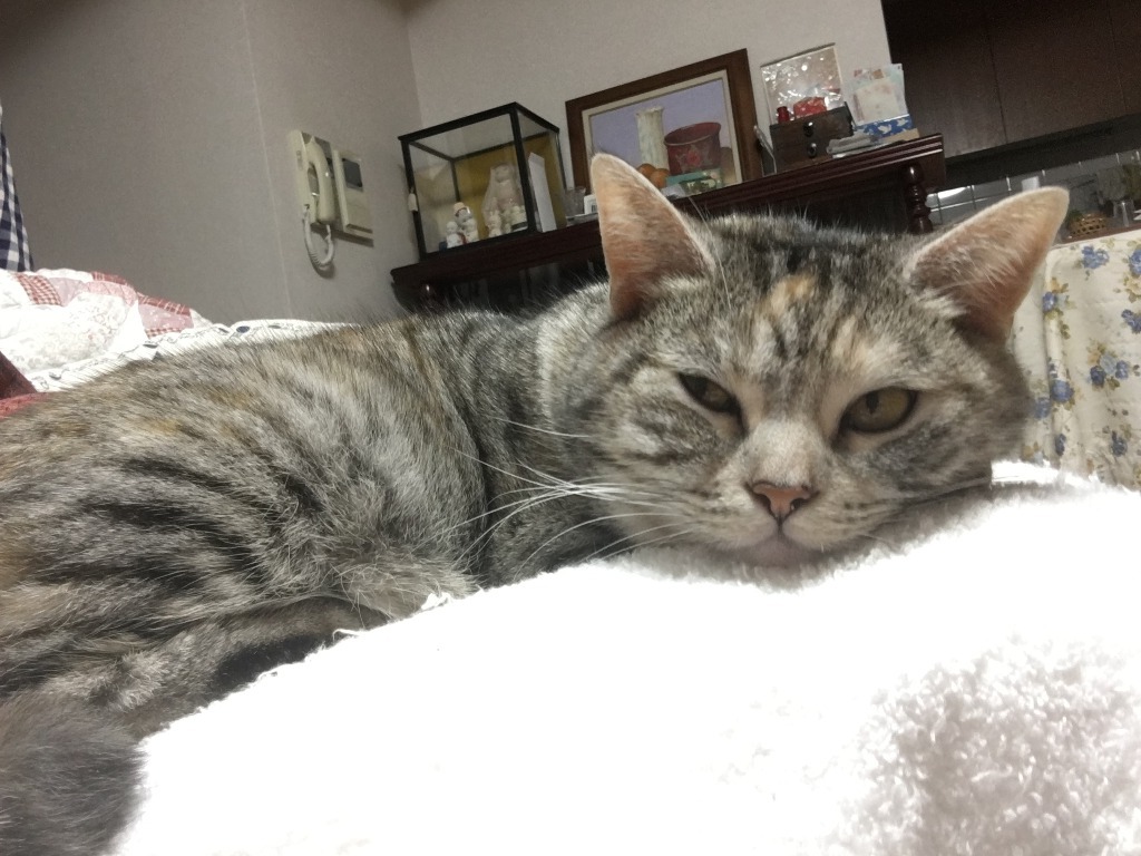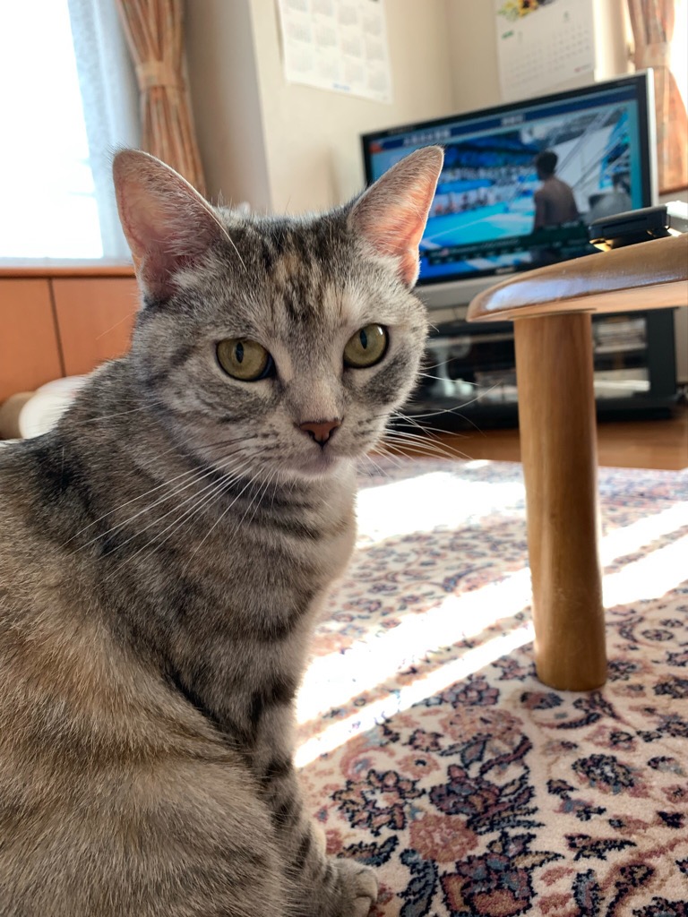 なぜか今日はダイニングテーブルの足元でじーっと固まって、顔を見ていました。