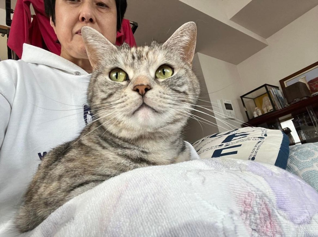 「猫飼ってるんですね。 可愛いですね。」とこころちゃんの顔を覗いて、